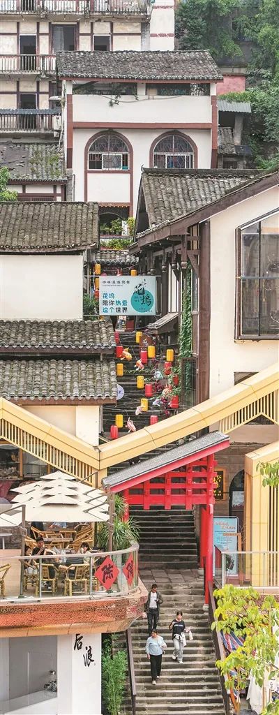 漫步古鎮(zhèn),只見石板路、青瓦房、江邊碼頭、茶館、劇院……在這里泡一壺清茶、聽一曲川劇、吹一襲江風(fēng),既能品味古鎮(zhèn),又能放松心情。通過整體提升古鎮(zhèn)業(yè)態(tài),磁器口實現(xiàn)了從單一旅游產(chǎn)業(yè)向文旅消費、文創(chuàng)產(chǎn)業(yè)等復(fù)合業(yè)態(tài)的轉(zhuǎn)型升級,打造出“望得見山、看得見水、記得住鄉(xiāng)愁”的城市文化地標。