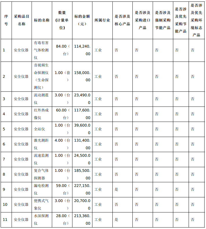 12月2日,中國政府采購網(wǎng)發(fā)布了內(nèi)江市應(yīng)急管理局四川省內(nèi)江市自然災(zāi)害應(yīng)急能力提升工程基層防災(zāi)項(xiàng)目第二批儀器設(shè)備采購項(xiàng)目招標(biāo)公告,項(xiàng)目預(yù)算金額1,255,540.00元,采購有毒有害氣體檢測(cè)、音視頻生命探測(cè)儀(生命探測(cè)儀)、流動(dòng)測(cè)震儀、紅外熱成像儀、全站儀等儀器設(shè)備。