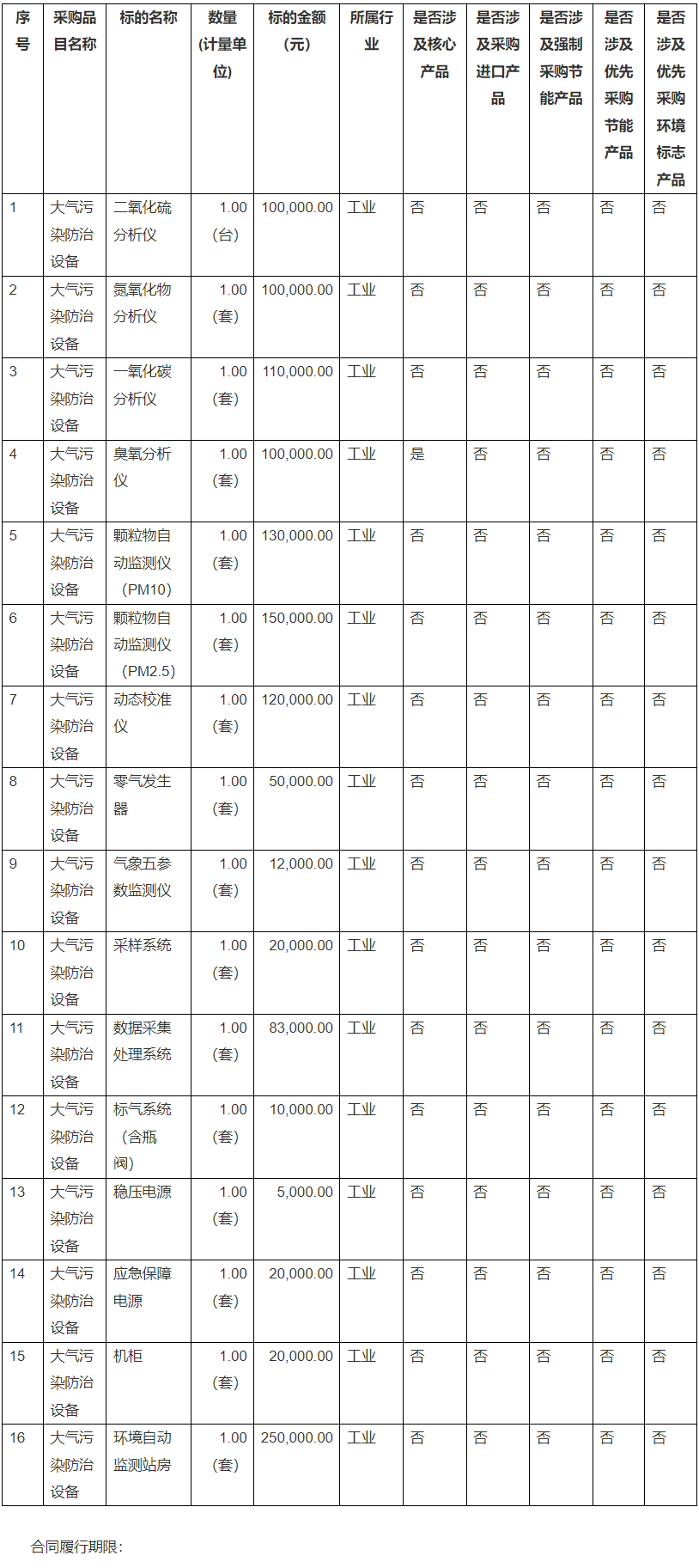 12月5日,中國政府采購網(wǎng)發(fā)布了涼山彝族自治州美姑生態(tài)環(huán)境局美姑縣省控環(huán)境空氣質(zhì)量自動監(jiān)測站點位變更及更換整套儀器設(shè)備項目競爭性談判公告,項目預(yù)算金額128萬元,采購二氧化硫分析儀、氮氧化物分析儀、一氧化碳分析儀、臭氧分析儀等環(huán)境監(jiān)測儀器設(shè)備。