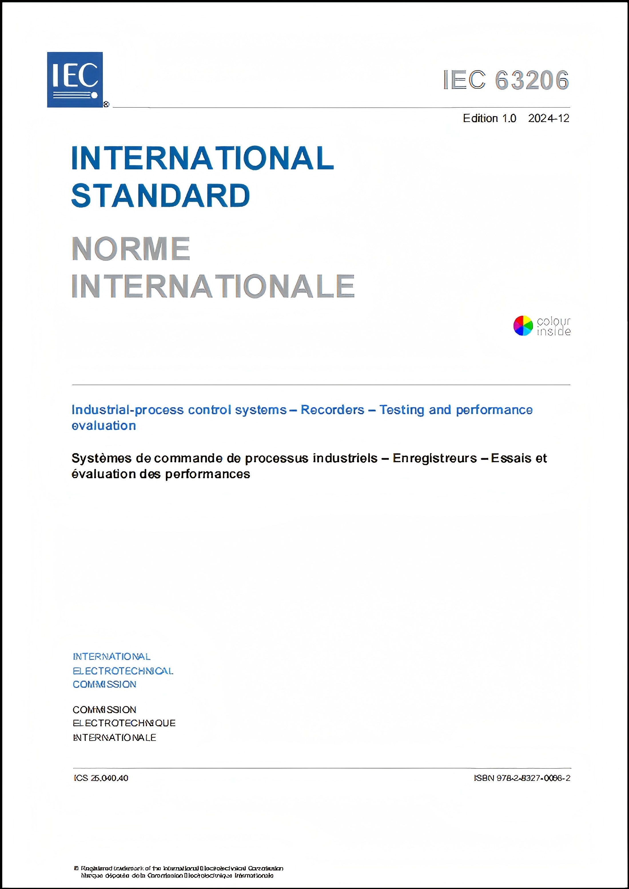2024年12月,由我國牽頭制定的國際標(biāo)準(zhǔn)《工業(yè)過程控制系統(tǒng) 記錄儀 試驗和性能評估》(IEC 63206:2024)正式發(fā)布。該標(biāo)準(zhǔn)規(guī)定了記錄儀的分類、要求和性能評估方法,適用于過程控制系統(tǒng)中使用的模擬圖形記錄儀、數(shù)字記錄儀、X-Y記錄儀、事件記錄儀等。