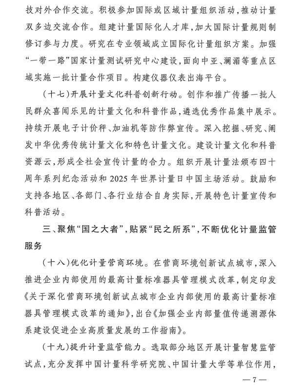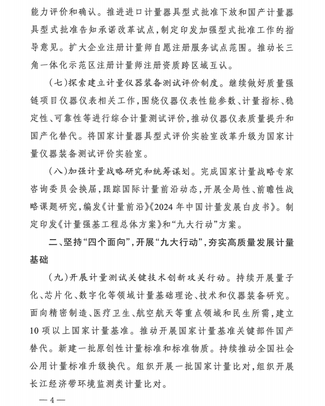 1月26日,市場監(jiān)管總局辦公廳發(fā)布《2025年全國計(jì)量工作要點(diǎn)》,聚焦問題、瞄準(zhǔn)目標(biāo)、狠抓落實(shí);依托計(jì)量重點(diǎn)單位,歸集計(jì)量重大需求,推動(dòng)落實(shí)計(jì)量重大項(xiàng)目,健全完善計(jì)量工作高水平協(xié)同聯(lián)動(dòng)機(jī)制;凝心聚力,擔(dān)當(dāng)作為,為高質(zhì)量發(fā)展提供有力計(jì)量支撐。