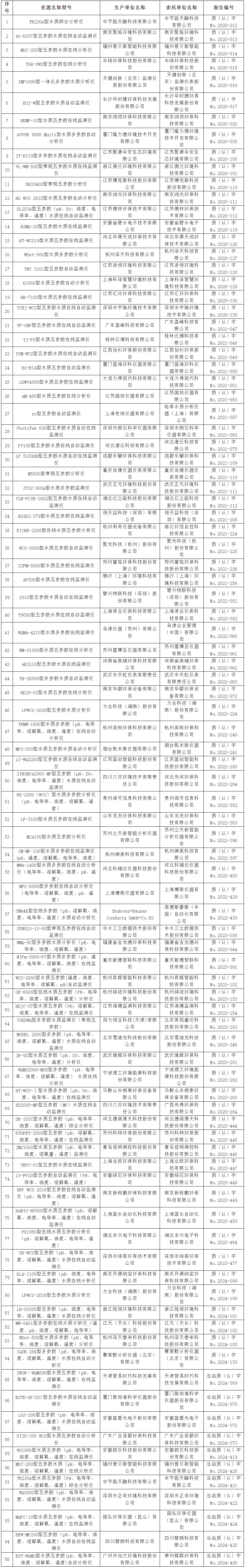五參數水質在線自動監(jiān)測儀適用性檢測合格名錄 (截至2024年12月31日)