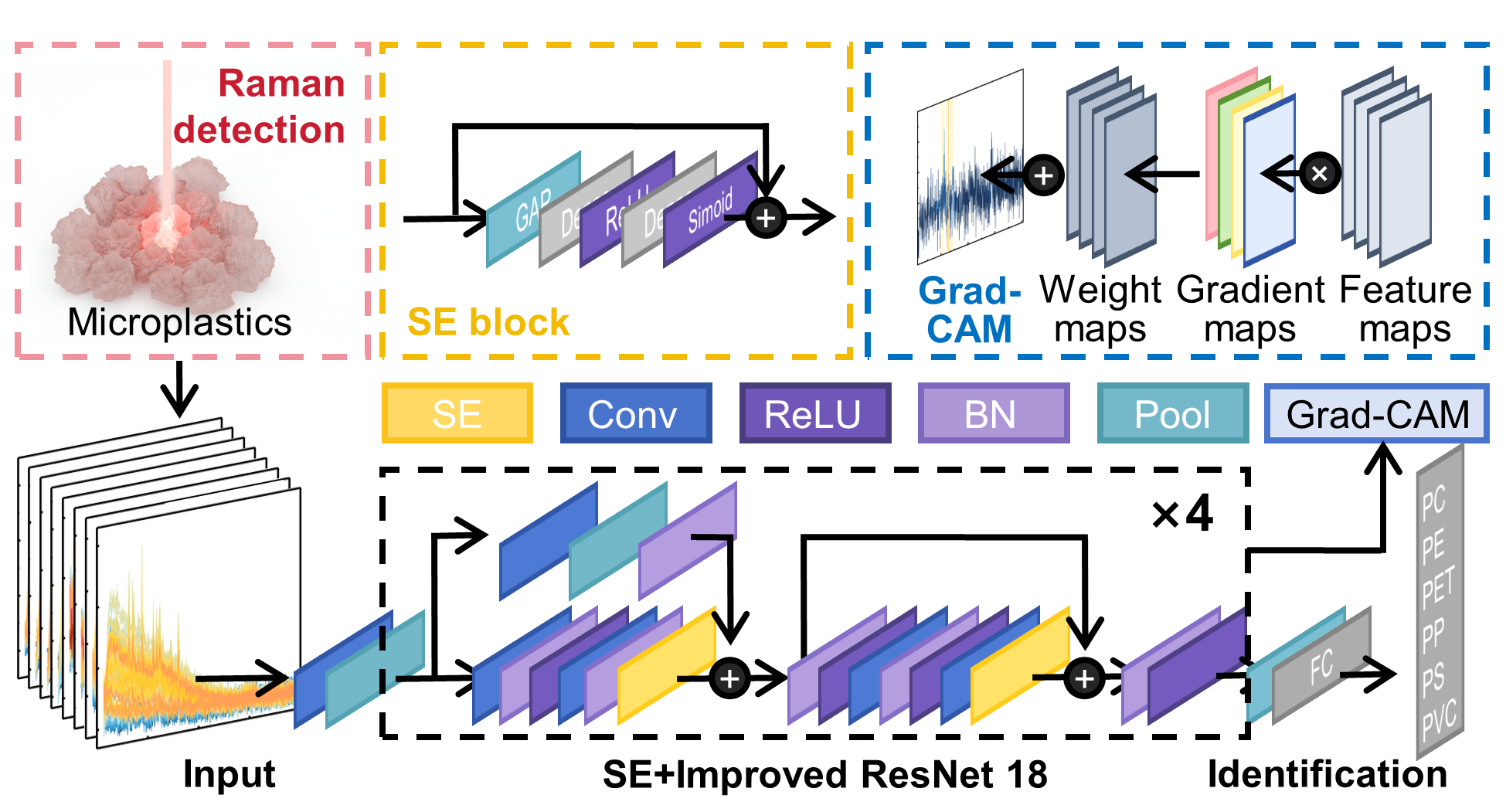 基于改進(jìn)殘差網(wǎng)絡(luò)的微塑料拉曼光譜分類(lèi)的示意圖