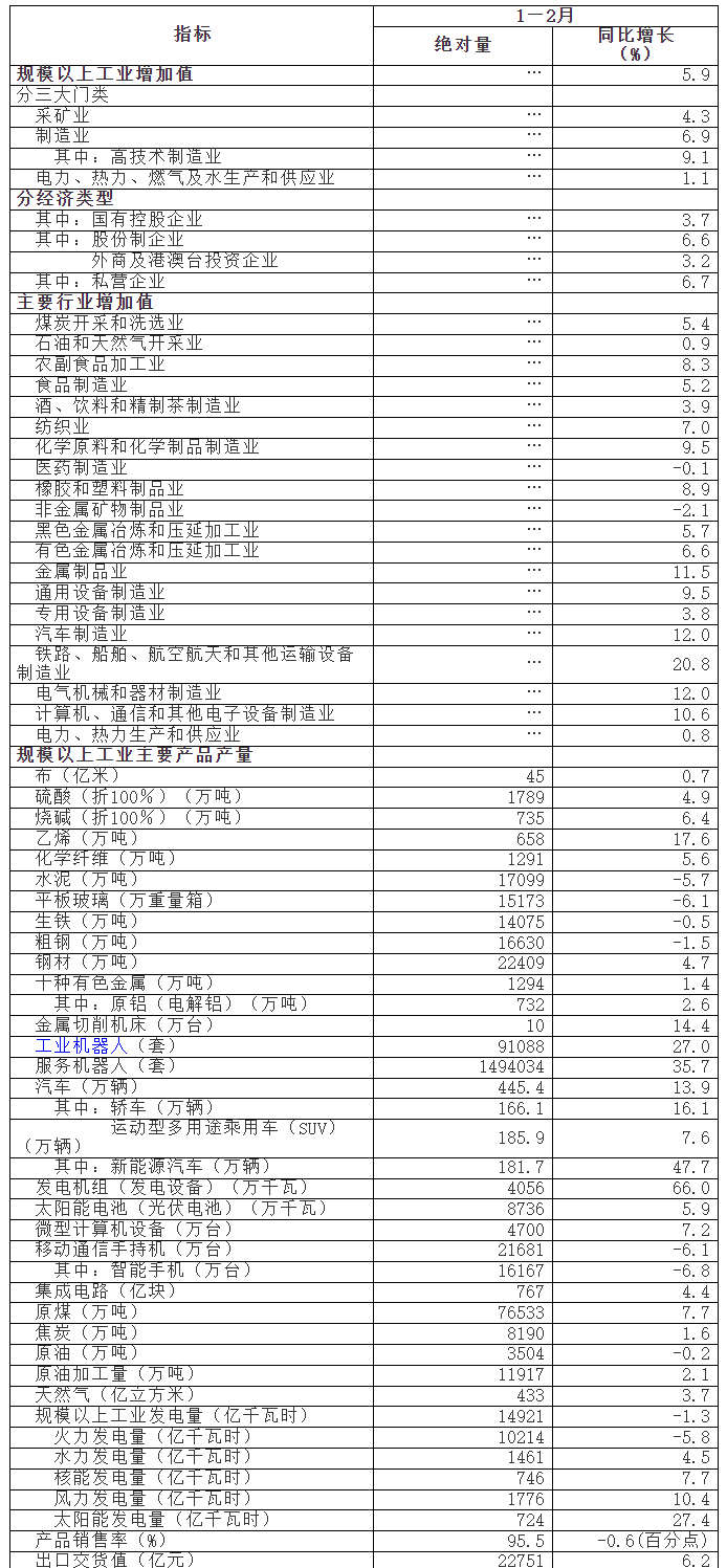 2025年1—2月份規(guī)模以上工業(yè)生產(chǎn)主要數(shù)據(jù)