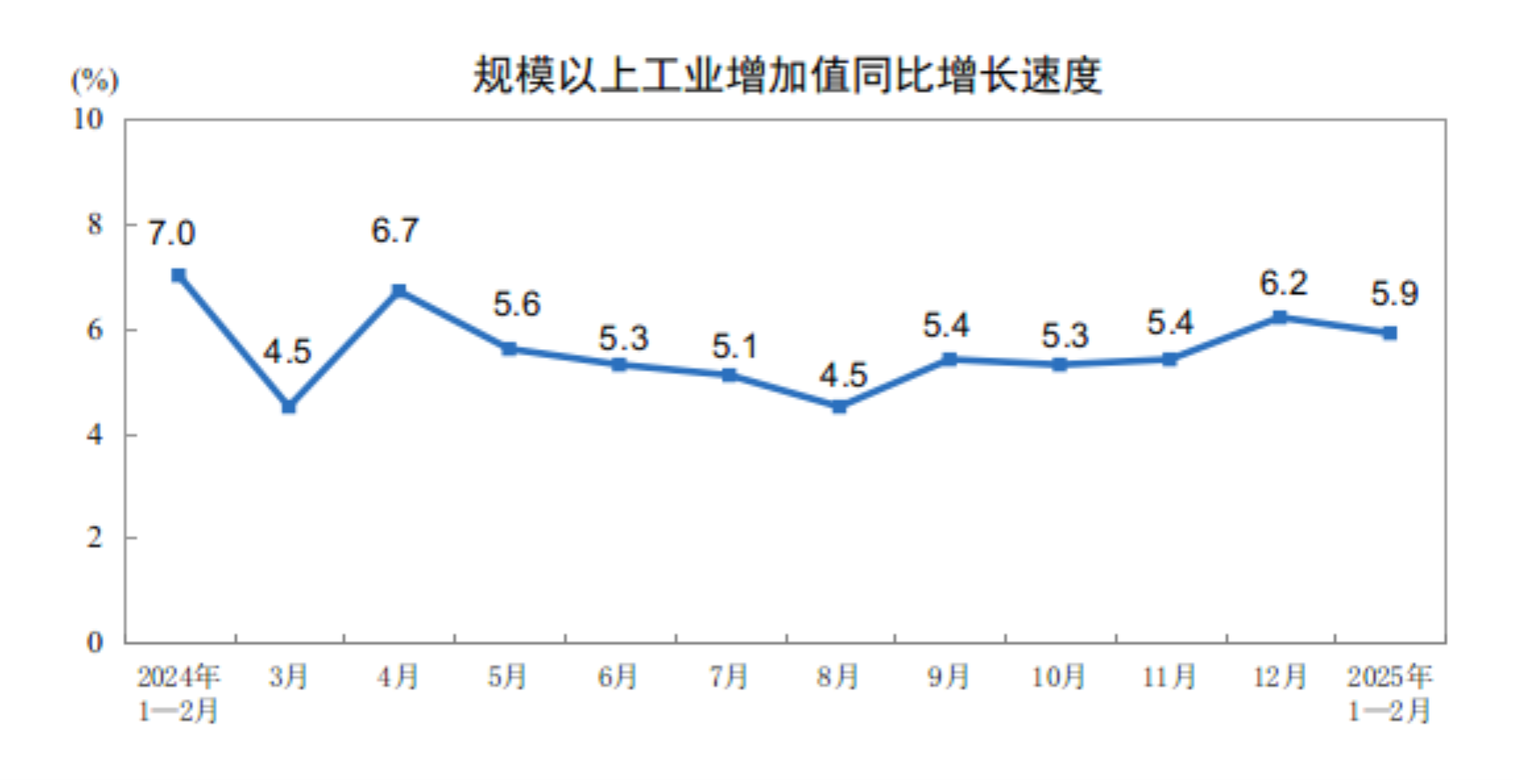 2025年1-2月份規(guī)模以上工業(yè)增加值增長5.9%