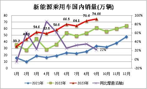 9月新能源車市場零售74.6萬輛,同比增長22.1%,環(huán)比增長4.2%。今年以來累計零售518.8萬輛,同比增長33.8%。(數(shù)據(jù)來源:中汽協(xié))
