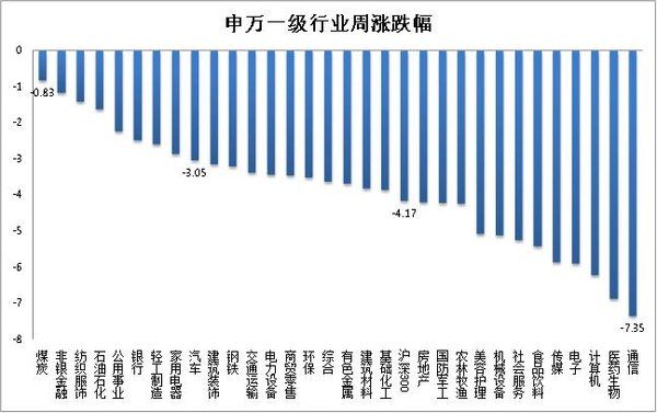 1. 上周行情概覽:滬深300指數(shù)下跌4.17%。汽車(chē)行業(yè)指數(shù)下跌3.05%,跌幅小于滬深300指數(shù),在申萬(wàn)31個(gè)一級(jí)行業(yè)中,位列第9位。煤炭喊個(gè)與指數(shù)下跌0.83%,跌幅最小,通信指數(shù)下跌7.35%,跌幅最大。