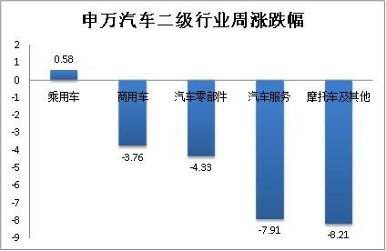 2. 汽車(chē)行業(yè)二級(jí)子板塊:乘用車(chē)上漲0.58%,漲幅最大;摩托車(chē)及其他下跌8.21%,跌幅最大。