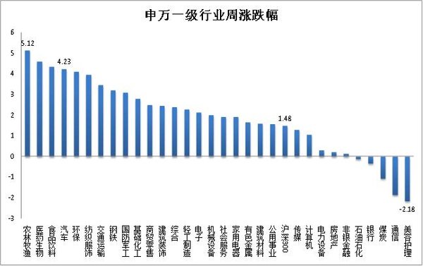 1. 上周行情概覽:滬深300指數(shù)上漲1.48%。汽車行業(yè)指數(shù)上漲4.23%,漲幅小于滬深300指數(shù),在申萬31個一級行業(yè)中,位列第4位農林牧漁指數(shù)上漲5.12%,跌幅最小,美容護理指數(shù)下跌7.35%,跌幅最大。