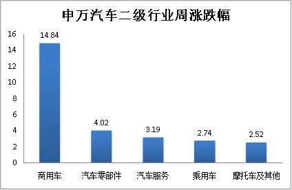 3. 個股漲跌:汽車板塊內共有251只個股,上周個股漲多跌少,其中215只個股上漲,36只個股下跌。漲幅幅均值為5.72%,中值為5.00%。漲幅最大的個股是:鵬翎股份(53.64%);跌幅最大的個股是:晉拓股份(-17.53%)。