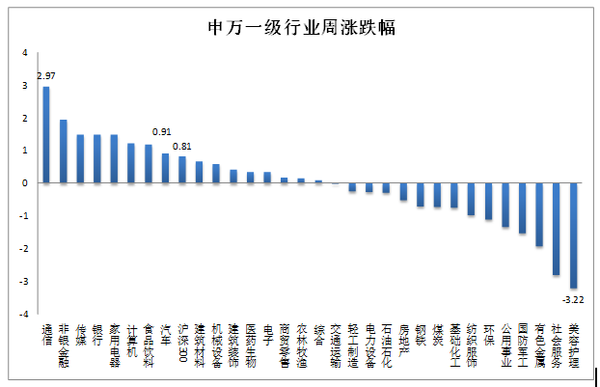 1. 本周,滬深300指數(shù)上漲0.81%。汽車行業(yè)指數(shù)上漲0.91%,漲幅大于滬深300指數(shù),在申萬(wàn)31個(gè)一級(jí)行業(yè)中,位列第8位。通信行業(yè)指數(shù)上漲2.97%,漲幅最高,美容護(hù)理行業(yè)指數(shù)下跌3.22%,跌幅最大。