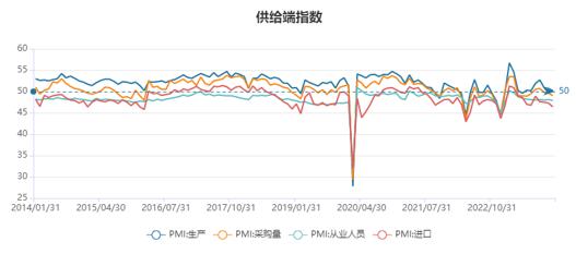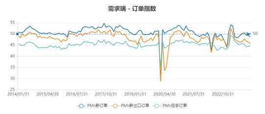 制造業(yè)PMI已經(jīng)連續(xù)三個月環(huán)比回落,繼續(xù)非季節(jié)性回落,處于收縮區(qū)間。從需求端看,PMI進口和新出口訂單持續(xù)回落,大、中、小型企業(yè)均出現(xiàn)下滑,需求端壓力仍較大。從供給端看,在手訂單、主要原材料購進價格小幅上行,生產(chǎn)端仍在擴張區(qū)間,但擴張趨勢放緩。制造業(yè)PMI原材料、產(chǎn)成品庫存、企業(yè)采購小幅下行,企業(yè)仍處在從被動去庫向主動補庫邁進的過程中,采購意愿和生產(chǎn)意愿均有所下降。原材料價格上行、出廠價格下行壓縮了下游企業(yè)盈利空間,下游部分行業(yè)供給過剩。