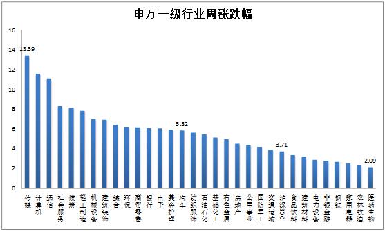 1、上周行情概覽:滬深300指數(shù)上漲3.71%。汽車行業(yè)指數(shù)上漲5.82%,漲幅大于滬深300指數(shù),在申萬(wàn)31個(gè)一級(jí)行業(yè)中位列第15位。傳媒行業(yè)指數(shù)上漲13.39%,漲幅最大,醫(yī)藥行業(yè)指數(shù)上漲2.09%,漲幅最小。