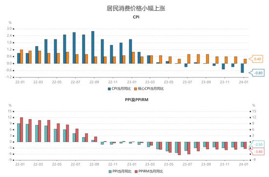 1月CPI同比降幅從12月的-0.3%擴(kuò)大至-0.8%,弱于市場預(yù)期(-0.5%),需求仍偏弱。PPI同比降幅同樣從去年12月份的-2.7%收窄至-2.5%,符合市場預(yù)期。