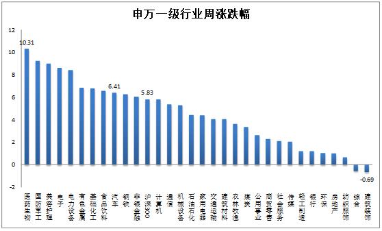 1.上周行情概覽:滬深300指數(shù)上漲5.83%。汽車行業(yè)指數(shù)上漲6.41%,漲幅大于滬深300指數(shù),在申萬31個一級行業(yè)中位列第9位。醫(yī)藥生物行業(yè)指數(shù)上漲10.31%,漲幅最大,建筑裝飾行業(yè)指數(shù)下跌0.69%,跌幅最大。