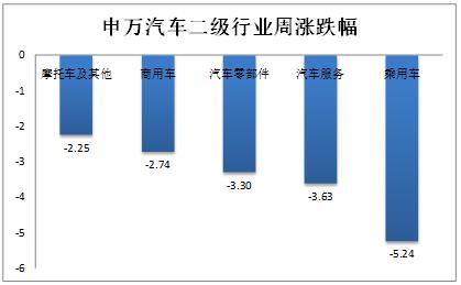 2. 汽車(chē)行業(yè)二級(jí)子板塊:摩托車(chē)及其他板塊下跌2.25%,跌幅最小;乘用車(chē)板塊下跌5.24%,跌幅最大。