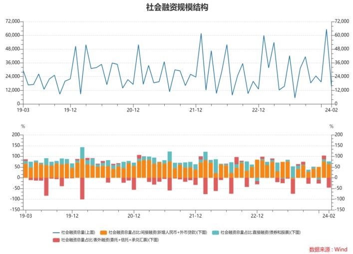 圖表1:2月社融規(guī)模及結構(億元,%)