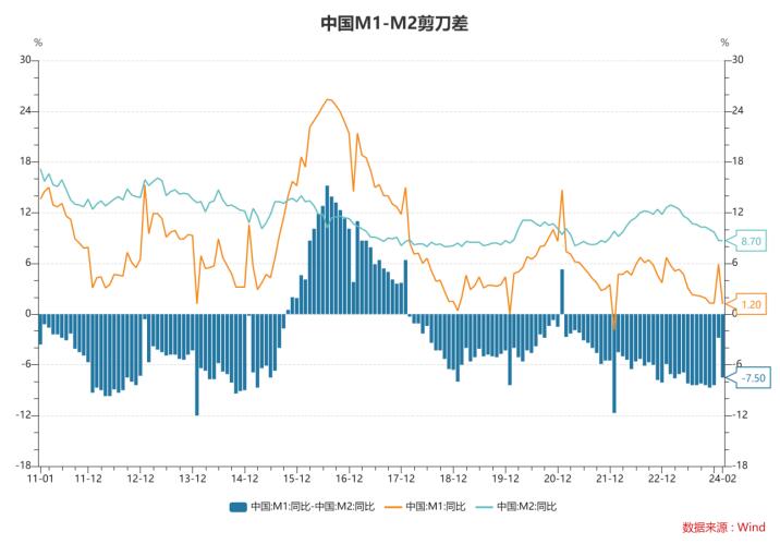 2024年2月新增社融1.52萬億,預期2.42萬億,去年同期3.16萬億;存量社融增速9.0%,前值9.5%;新增人民幣貸款1.45萬億,預期1.43萬億,去年同期1.81萬億;M2同比8.7%,預期8.7%,前值8.7%;M1同比1.2%,前值5.9%。
