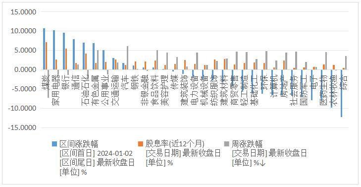 圖表4:區(qū)間漲跌幅(%)和股息率(%)(申萬一級行業(yè)指數(shù))