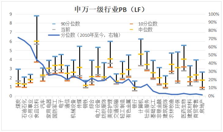 圖表6:A股行業(yè)估值情況(申萬以及行業(yè)PB(LF))