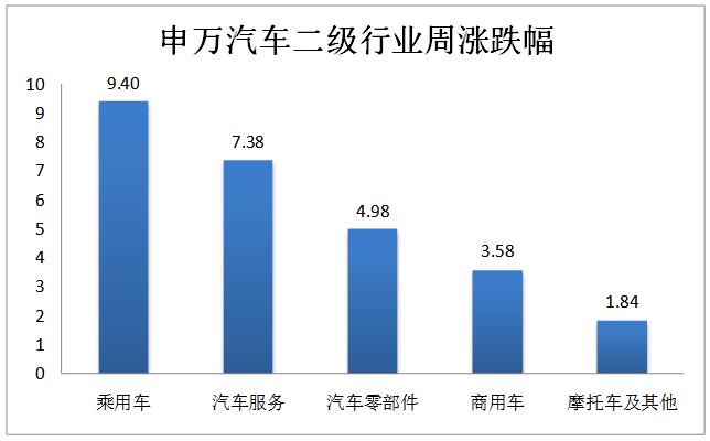 汽車行業(yè)二級子板塊:乘用車板塊上漲9.40%,漲幅最大;摩托車及其他板塊上漲1.84%,漲幅最小。