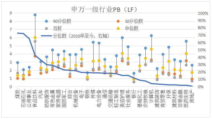 圖表3:A股行業(yè)估值情況(申萬(wàn)以及行業(yè)PB(LF))