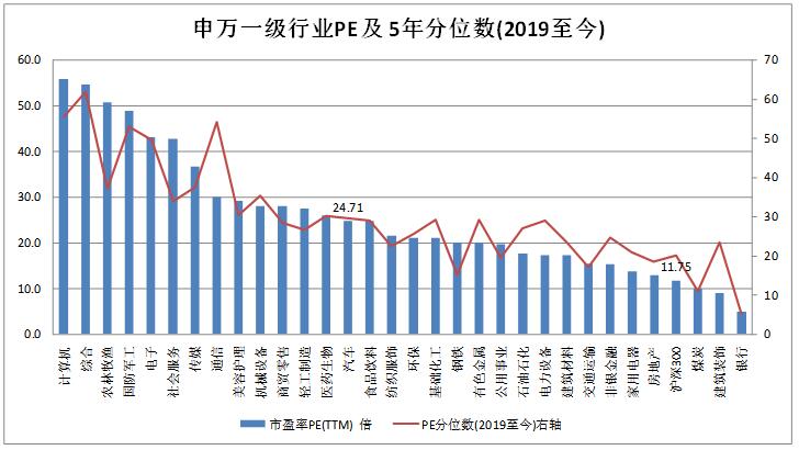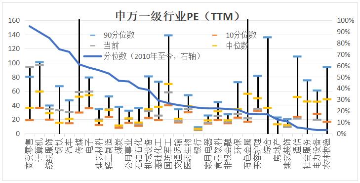 圖表8:A股行業(yè)估值情況(申萬以及行業(yè)PE(TTM))