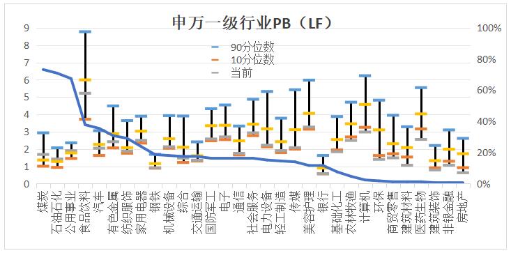 圖表9:A股行業(yè)估值情況(申萬以及行業(yè)PB(LF))