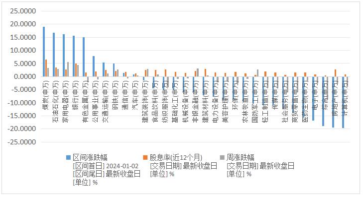 圖表7:區(qū)間漲跌幅(%)和股息率(%)(申萬一級行業(yè)指數(shù))