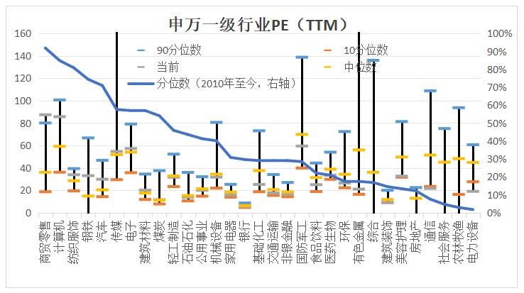 圖表8:A股行業(yè)估值情況(申萬以及行業(yè)PE(TTM))