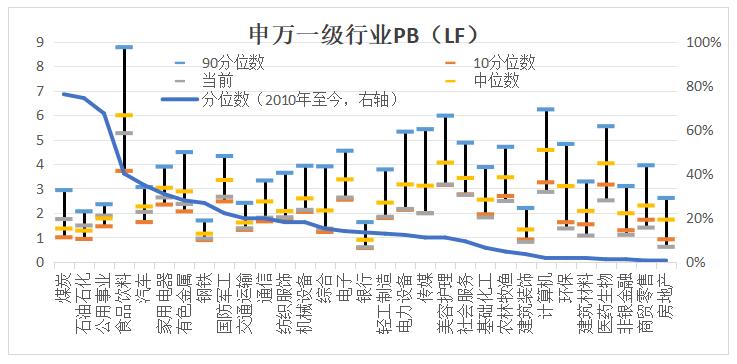 圖表9:A股行業(yè)估值情況(申萬以及行業(yè)PB(LF))