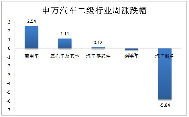 1.汽車行業(yè)二級子板塊:商用車板塊上漲2.54%,漲幅最大;汽車服務(wù)板塊下跌5.84%,跌幅最大。