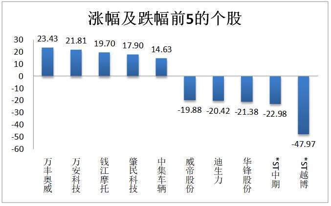 2.個股漲跌:汽車板塊個股上周漲少跌多,其中63只個股上漲,187只個股下跌。漲跌幅均值為-4.08%,中值為-4.19%。漲幅最大的個股是:萬豐奧威(23.43%);跌幅最大的個股是:ST博越(-47.97%)。