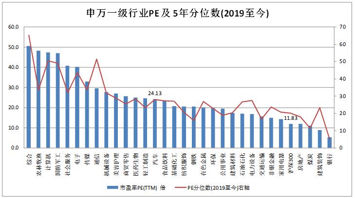 圖表 13 申萬一級行業(yè)PE及5年分位數(shù)(%)