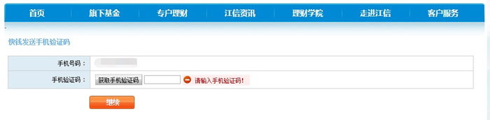 3、點擊“獲取手機驗證碼”,填寫手機收到的驗證碼,點擊繼續(xù)。