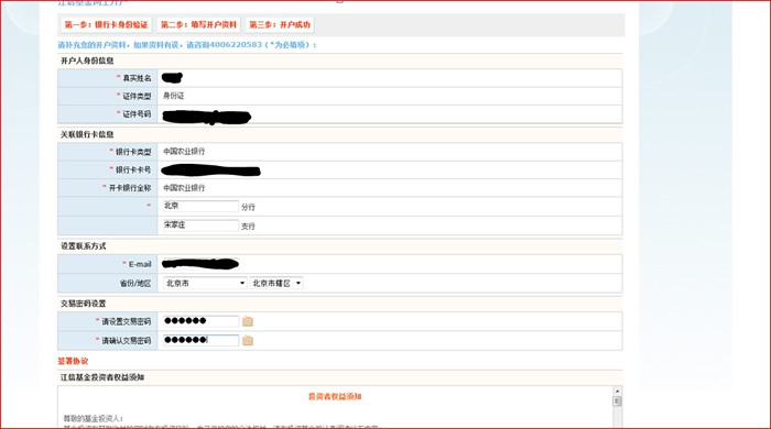 4、填寫詳細的開戶人個人資料,設(shè)置交易密碼。