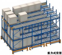 重力式貨架又叫自重力貨架,屬于重型貨架,是由托盤式貨架演變而來的,適用于少品種大批量同類貨物的存儲,空間利用率極高,重力式貨架深度及層數(shù)可按需要而定。